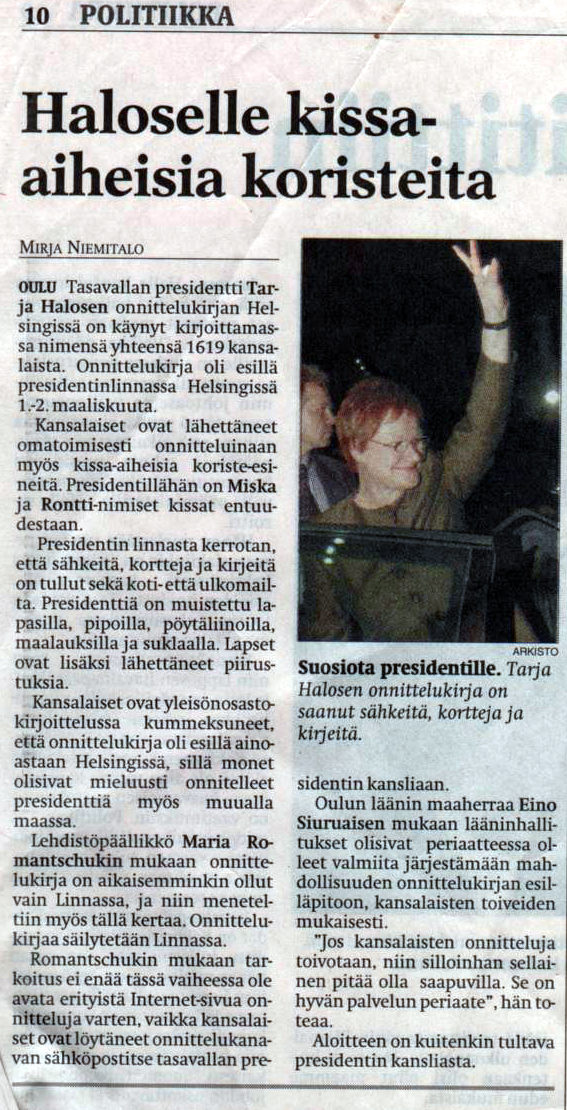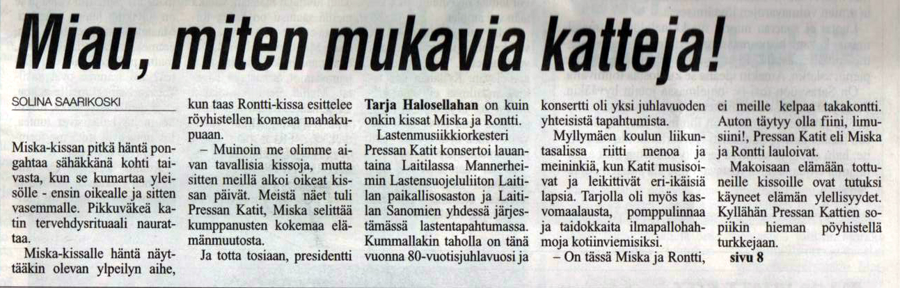 These pages are made by Valto Savolainen / Cats of the President. Send feedback!