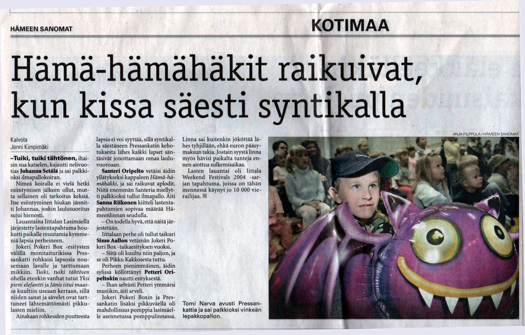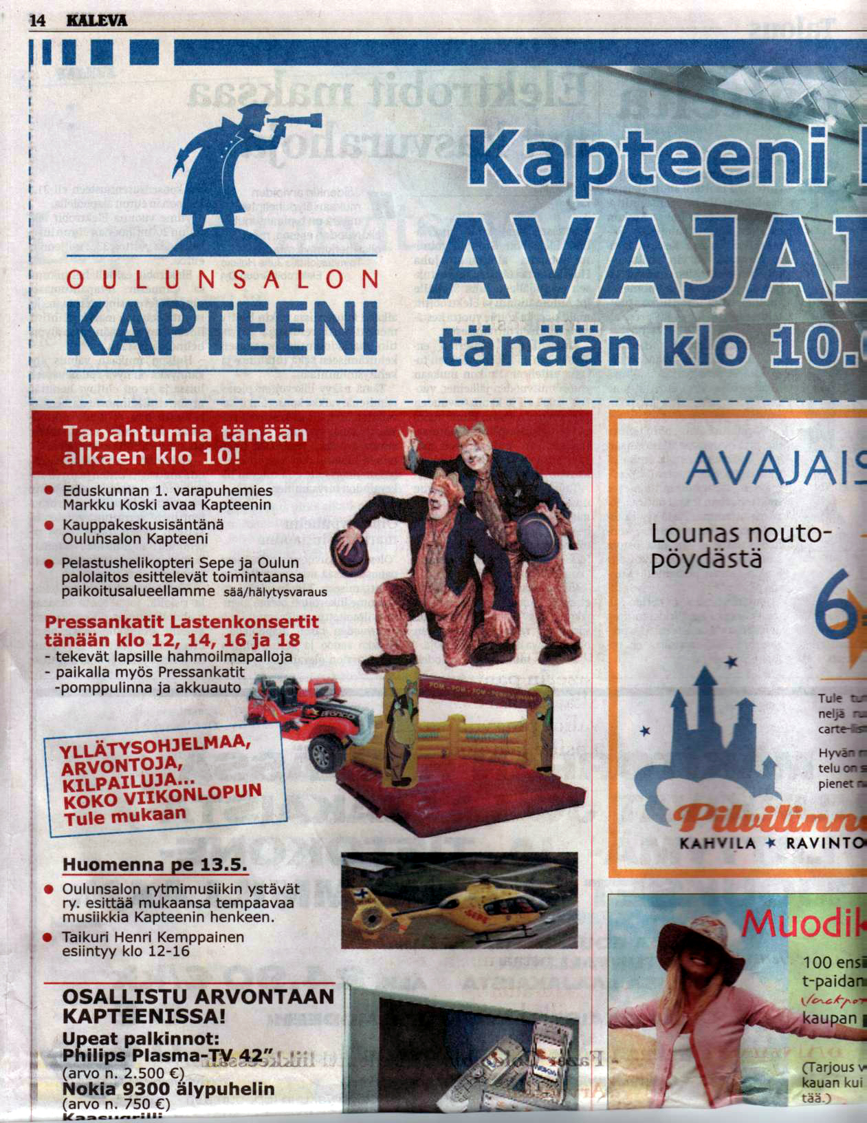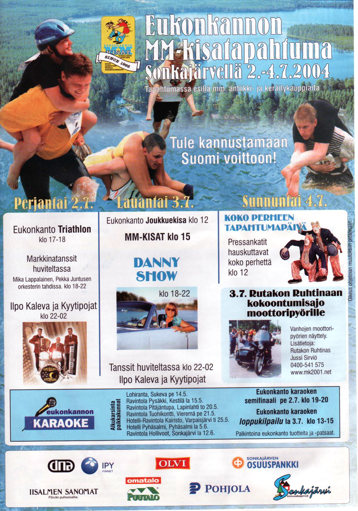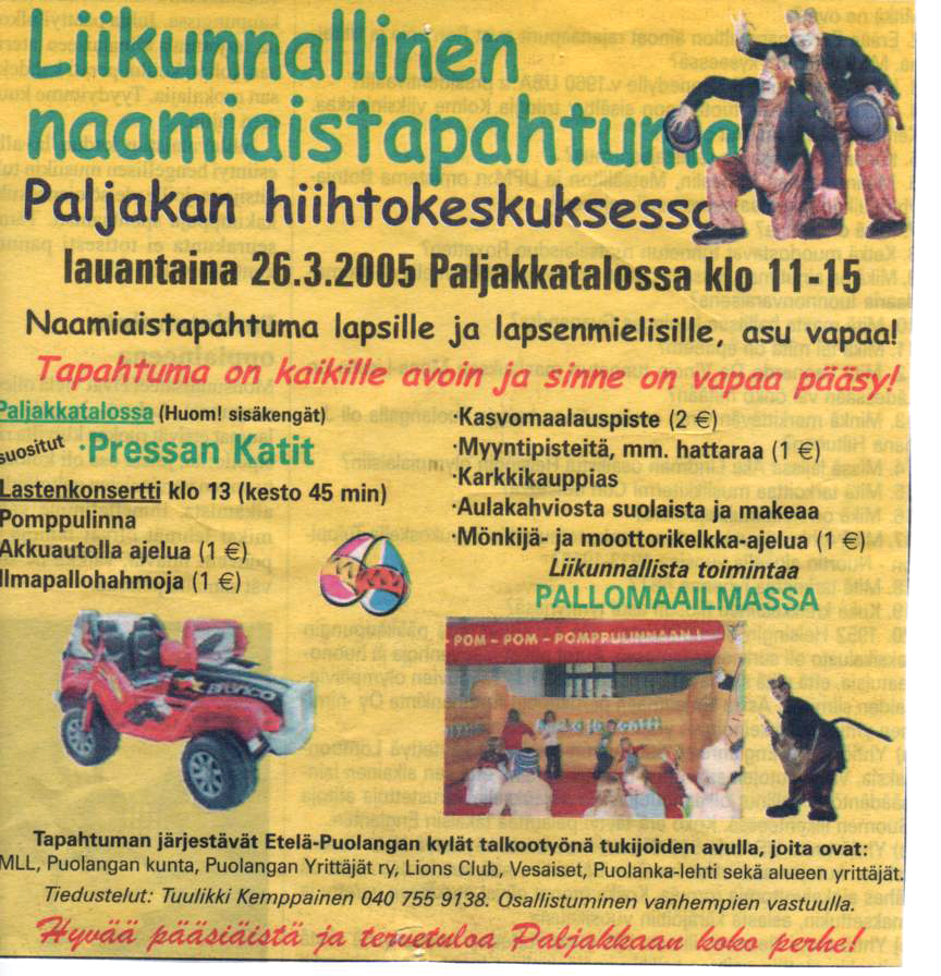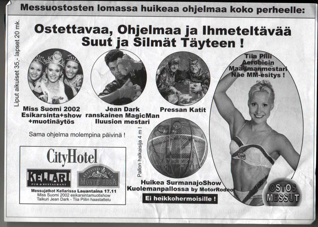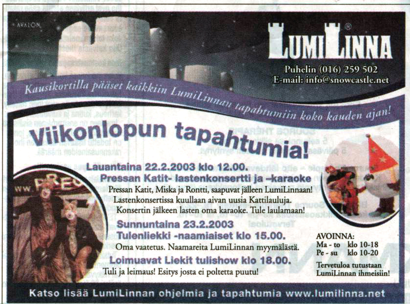 Here's a few, for example: the President of the republic of Finland Tarja Halonen was in Kempele (in year 2006), Wenetsialaiset in Kokkola, Tangomarkkinat in Seinäjoki, Eukonkanto in Sonkajärvi, Snowcastle in Kemi...