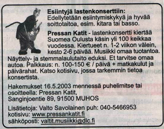 Miska look for new Rontti performer in year 2003: